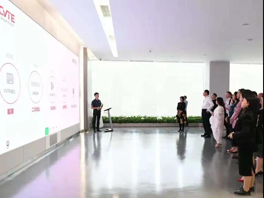 在视源同事的带领下,校友们参观走访广州视源第二产业园的科技展厅、视源体检中心、中西餐厅、职工幼儿园和电影院等。