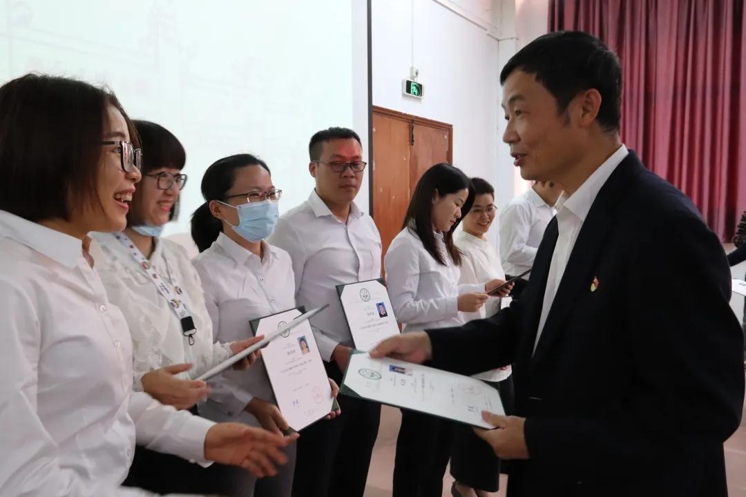 接下来,学员们盼望已久的结业证书颁发仪式开始了,主持人丁丽霞老师宣读了获得培训班结业证书的学员名单并邀请他们上台,由请广州王老吉大健康产业有限公司领导和我校领导共同为他们颁发结业证书。