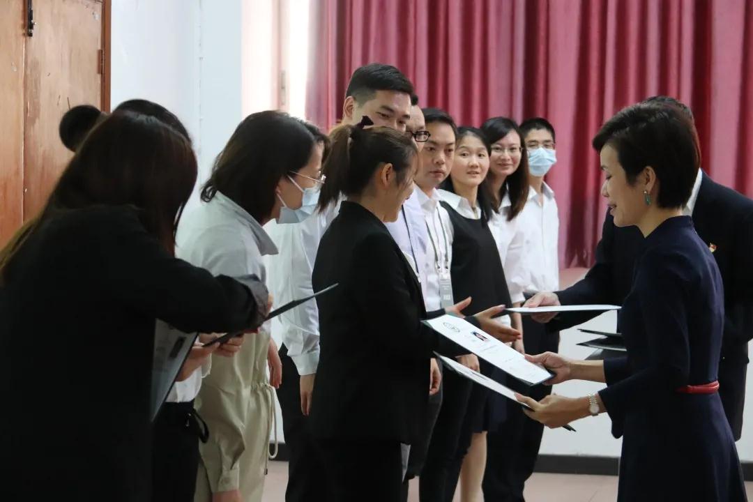 随后yl9193永利集团高等继续教育中心副主任、企业管理培训中心主任韦小妹在结业典礼上致辞,对学员发出了寄语,希望学员能够记住在中大学习的时光,能够继续同学同行,学以致用,并且保持高度的社会责任感,发展企业,造福社会,中大将以此为荣!