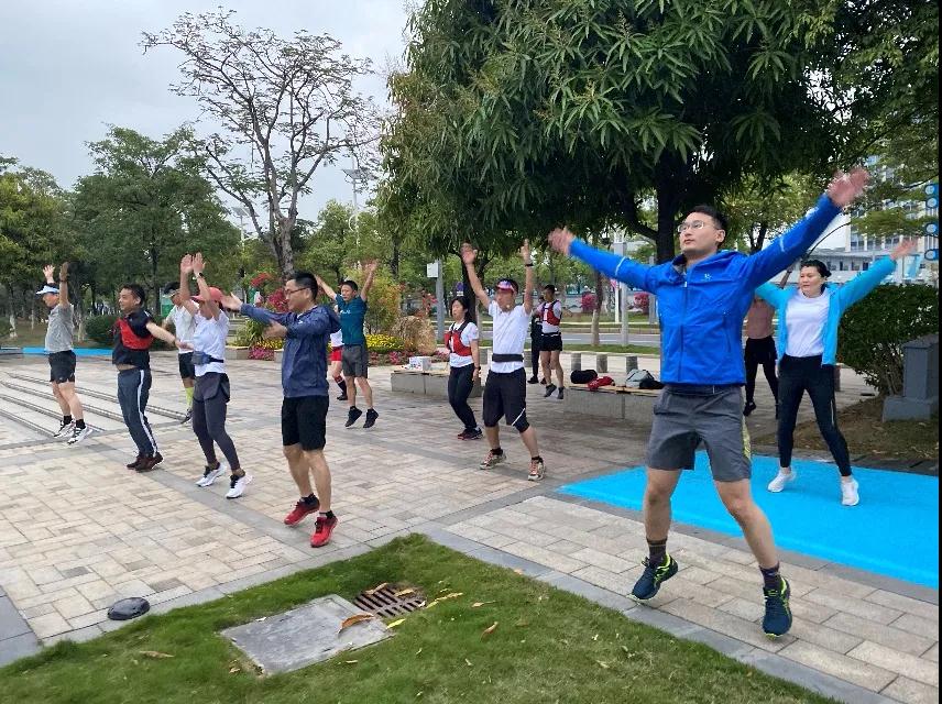 不出三日,心潮便再度翻涌。3月13日清晨,戈友们认真做好热身运动,准备进行环岛半马拉练。