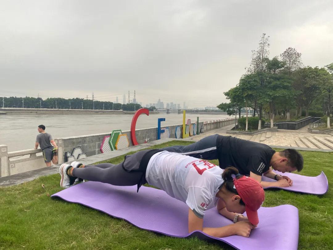 当天傍晚时分,暮色渐浓,而志气才起,参访完的戈友们在生物岛集合,进行了60分钟慢跑和核心力量训练后才肯散去。