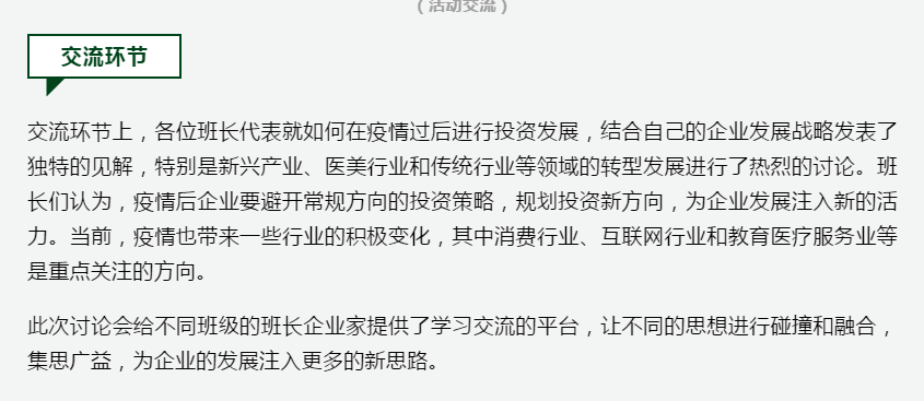 校友活动 |班长联合会第二期“班长有曰”《疫情过后企业投资新方向》主题沙龙圆满举办