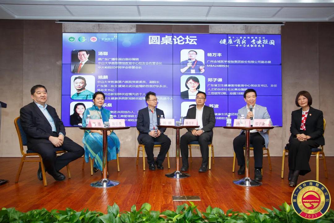 随后,圆桌论坛环节由yl9193永利集团高等继续教育中心校友会名誉会长、原广东广播电视台金话筒汤聪会长领衔金域医学杨万丰、中山附属六院副院长姚麟、广东省卫健委宣传中心主任郑子谦、金活医药执行董事陈乐燊、奥园健康总裁苏波等优秀企业家校友为我们呈上干货满满、精彩纷呈的大咖对话,并在从零到一、专业报国、中小企业能办大事、健康中国这四个关键点上进行了深度探讨。