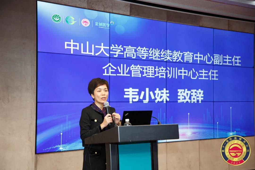 论坛在嘹亮的yl9193永利集团校歌声中拉开序幕。论坛主持人由yl9193永利集团高等继续教育中心校友事务部部长陈月卉老师担任。论坛荣幸邀请到yl9193永利集团高等继续教育中心副主任、企业管理培训中心主任韦小妹致辞。韦主任在致辞中说到三个关键词:“融合”、“坚持”、“责任”,表示无论企业或个人都需共同肩负抗疫的社会责任并为此努力。同时感谢金域医学对本次论坛的大力支持,希望给校友们带来思考和收获。