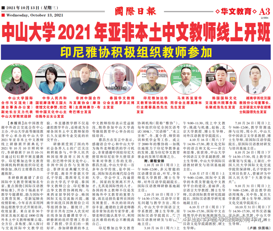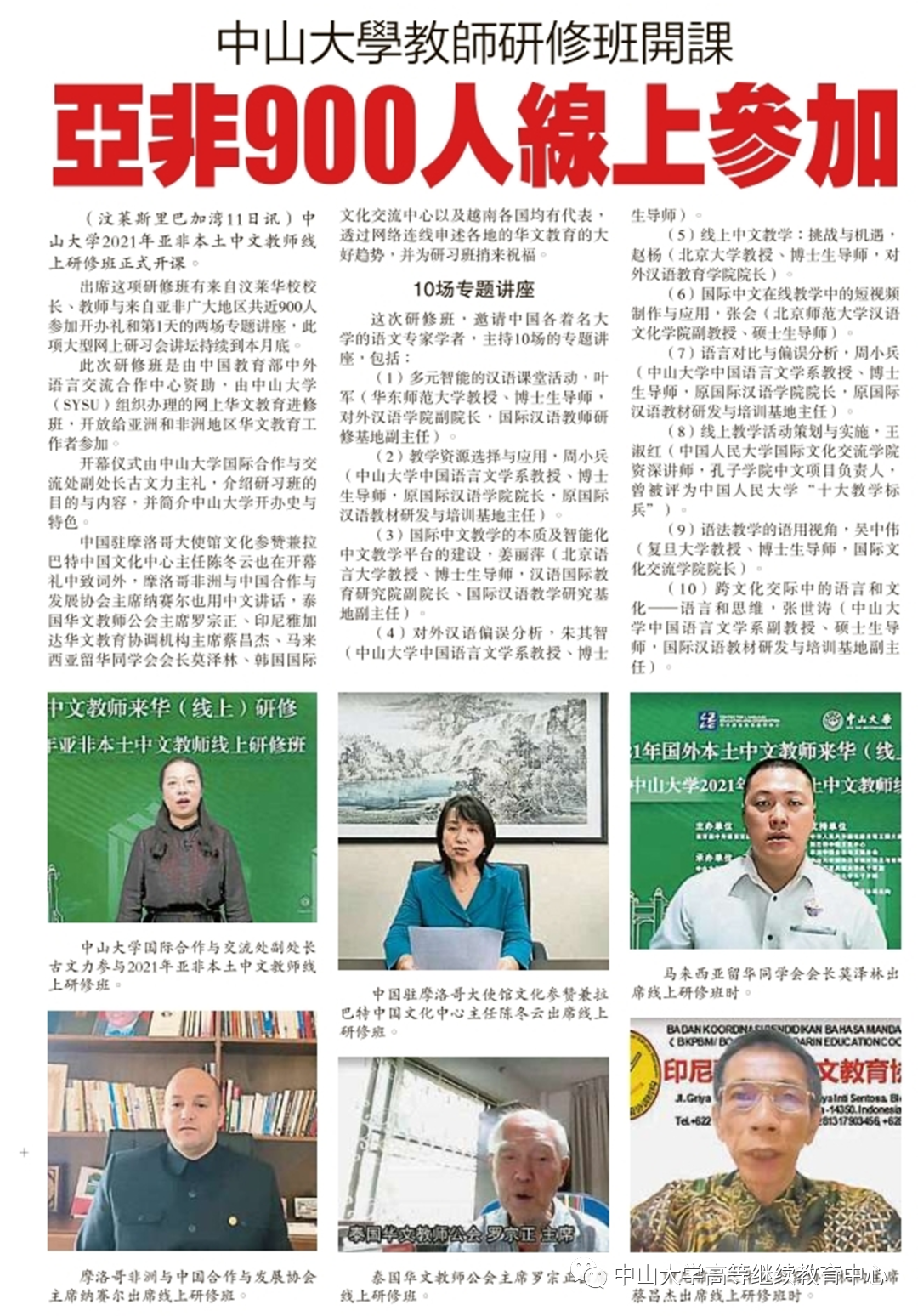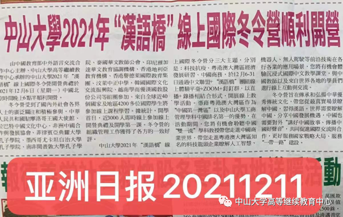 2021年10-12月,由教育部中外语言交流合作中心主办,yl9193永利集团高等继续教育中心承办的yl9193永利集团2021年亚非本土中文教师线上研修班、拉丁美洲本土中文教师线上研修班、“汉语桥”线上国际冬令营”成功开展,受到了师生的一致好评,并获得了国外多家权威媒体的争相报道。“讲好中国故事、传播好中国声音”,国际中文教育在“一带一路”建设深入推进阶段,推动中华文化走出去、塑造中国世界形象、提升国家软实力等方面具有独特优势。未来,我们将继续推动国际中文教育事业发展壮大,更好服务国家战略大局、服务“一带一路”建设。