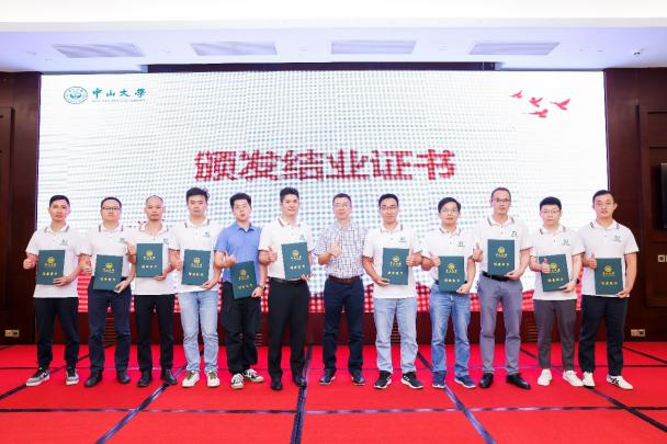 致辞结束后,班导师教授及中心领导为全体学员颁发了结业证书,并为荣获“优秀班委”、“优秀学员”与“勤学奖”奖项的学员颁发荣誉证书。随后,学员代表郭灿义、应俊上台发言,回顾了满载而归的校园生活,感谢中大、感谢老师、也感谢同班的学员们,并祝愿母校枝叶长青,桃李满天下。