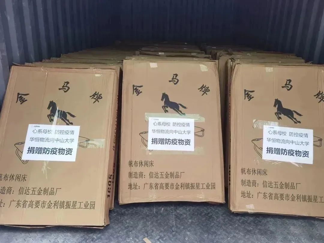 11月27日,广州市民营领军企业高质量发展专题研修班欧志伟校友企业广州华恒物流有限公司,岭南学院EDP同学会共同捐赠108张折叠床提供给学校后勤保供部门使用,支持学校疫情防控工作。