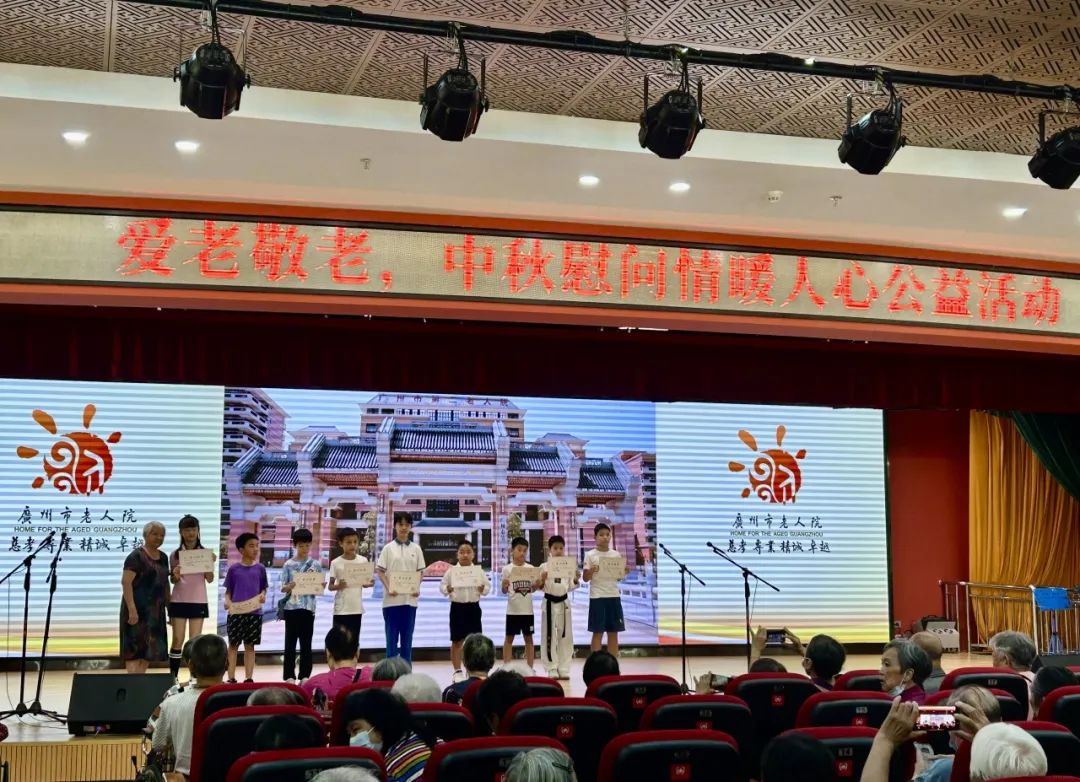 才艺表演后,广州市老人院也为小朋友颁发爱心小天使奖,向班长联合会授予尊老爱老锦旗。