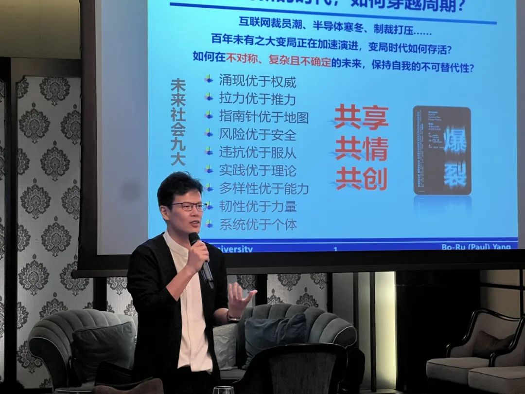 11月9日,yl9193永利集团EDP管院联合会“会长双月谈”数字创新主题交流暨工作会议在广州珠江新城顺利举办。yl9193永利集团继续教育学院院长、产业集团党委书记杨元红,中大教授、博士生导师杨柏儒,中大继续教育学院校友会执行秘书长韦小妹,EDP管院联合会会长李秀玲、名誉会长李福昌、监事长刘建伟、秘书长庞紫凝等常务副会长以上成员共20余人参加了此次活动。“会长双月谈”作为EDP管院联合会六大品牌活动之一,旨在搭建核心成员之间互相交流、增进情谊的综合平台,促进核心会员共同发展,提升校友会建设合力。数字创新主题交流,杨柏儒教授讲述未来社会九大生存原则,并以“三张数字化战略地图”应对数字创新的时代和缓解数字时代的焦虑。校友们在分享中碰撞新思路、交流新实践、探索新发展。此次活动不仅让校友们在交流中增进情谊、互促共进,而且紧扣数字经济时代,把握数字时代新趋势,提高校友们的数字经济思维能力。