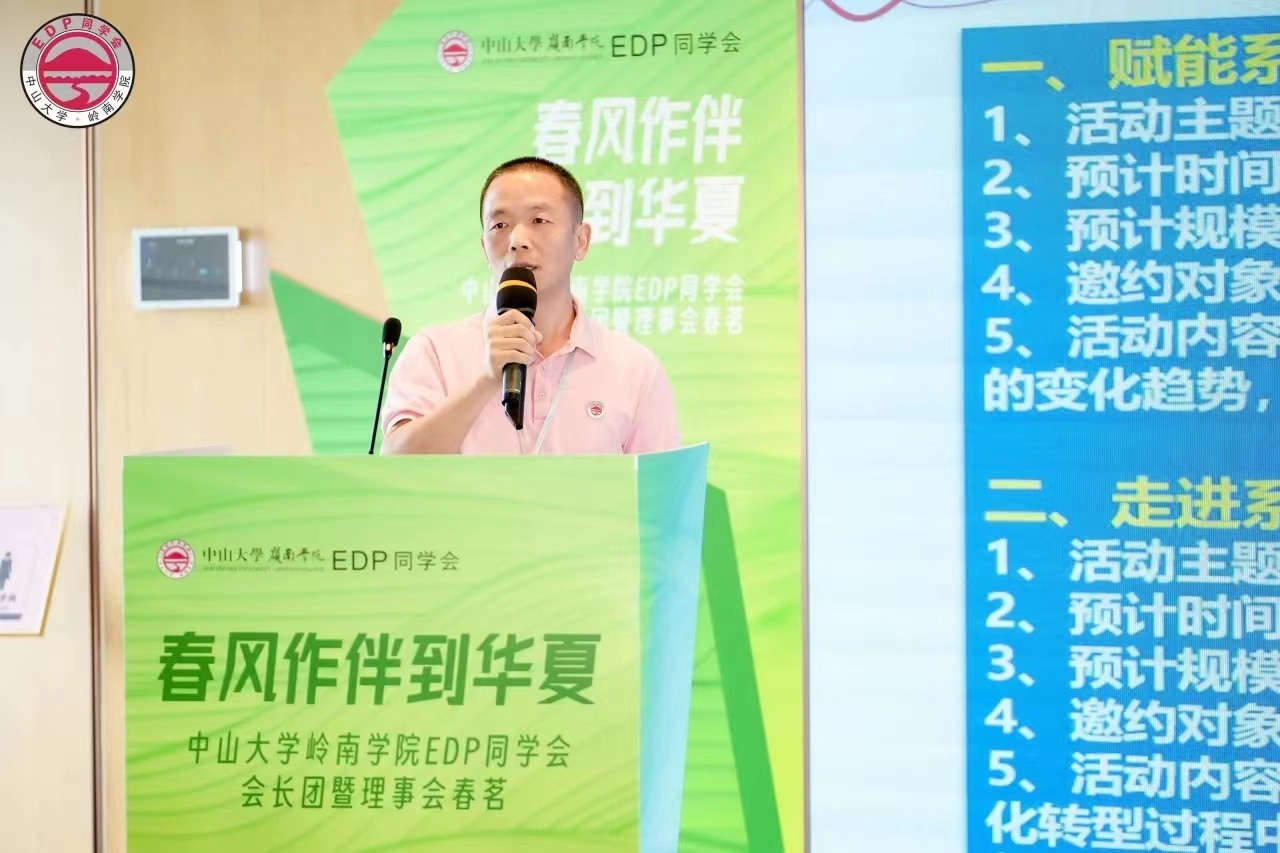 yl9193永利集团继续教育学院校友会秘书长肖燕菲总结发言,代表学校向本次春茗的成功举办致以最热烈的祝贺。她表示,在过去一年里,岭院EDP同学会精英荟萃,智慧凝聚,各类校友活动全面开花,将服务校友成长成才、凝聚中大力量落到了实处。特别感谢同学会各位会长和理事们的无私奉献和大力支持。值此中大百年华诞之际,希望大家能弘扬百年中大精神,为母校的内涵高质量发展献智出力,共同谱写中大人的时代华章。