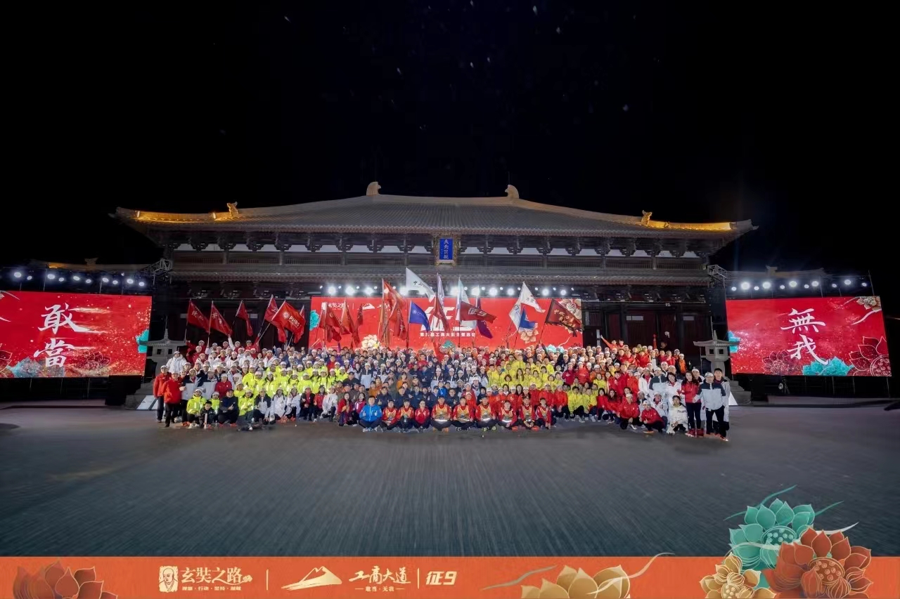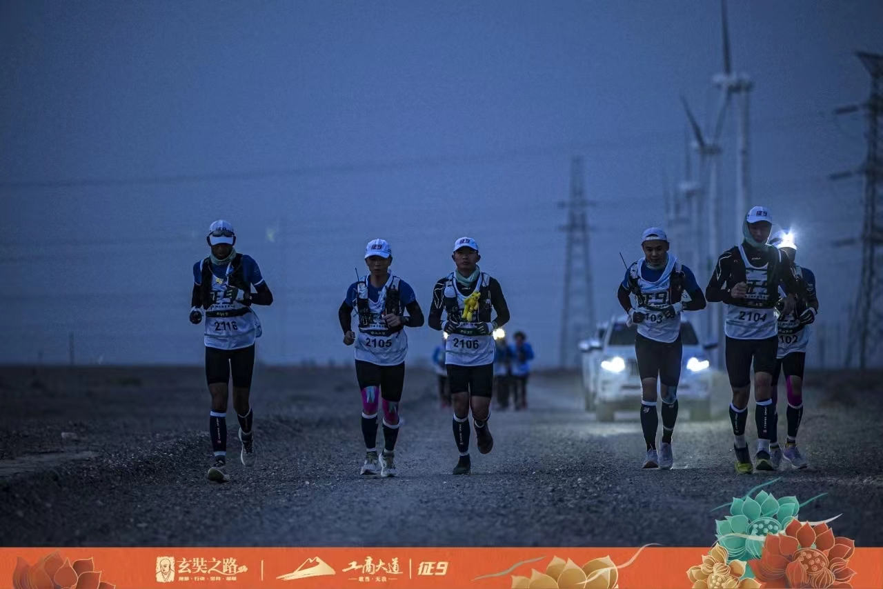 征途路漫漫,驼铃声悠长。这是穿越时空的闪回,也是对勇气与决心的召唤。征九戈友们身着赛服,高举旗帜,在玄奘法师西行起点阿育王寺启程,踏沙前行,开启4天3夜122公里的戈壁远征。