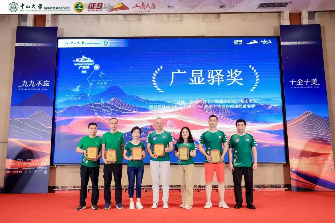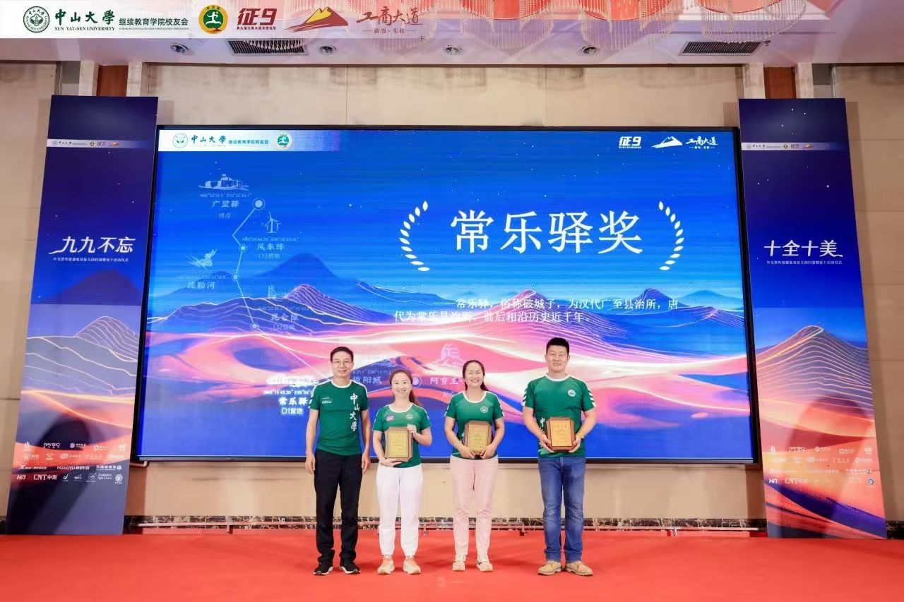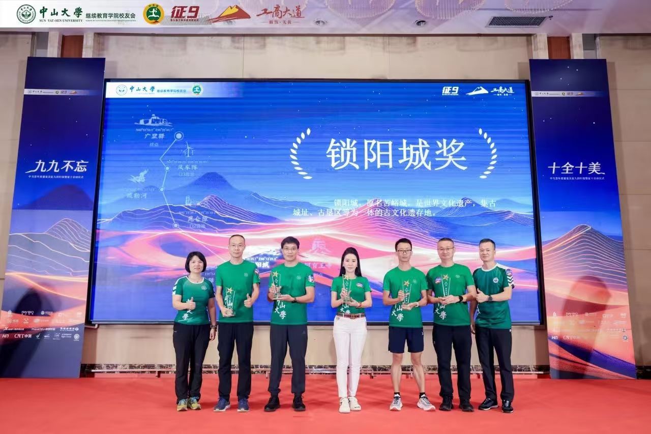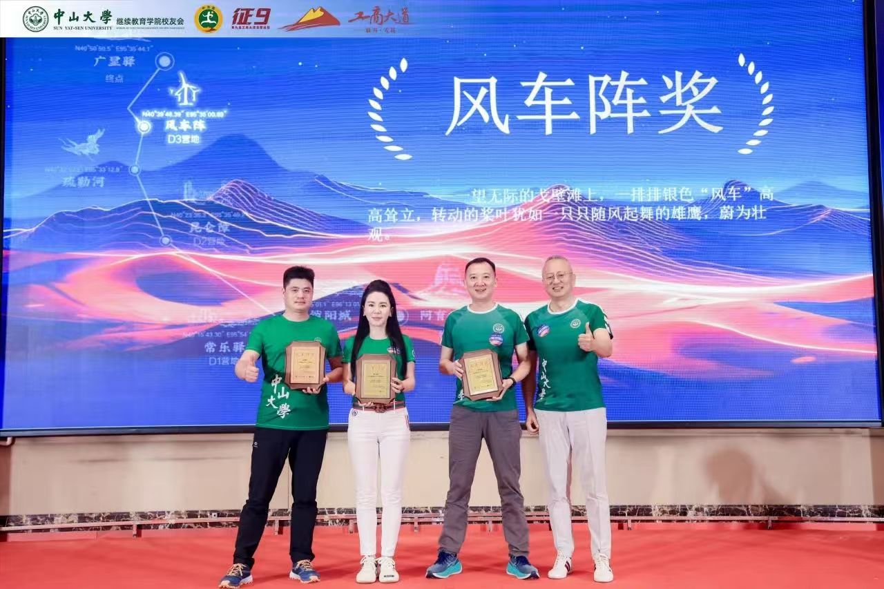 苍茫戈壁,荣光不绝。回归宴上隆重举行了颁奖仪式,以戈壁远征赛事特色象征命名奖项,中大继教院领导老师、校友会代表、兄弟院校嘉宾分别向中大征九全体队员以及支持赞助征九的热心校友、赞助商颁发荣誉奖牌,表达赞赏与感谢。感恩致敬大家一路的支持和付出,汇聚成了这璀璨的荣光!
