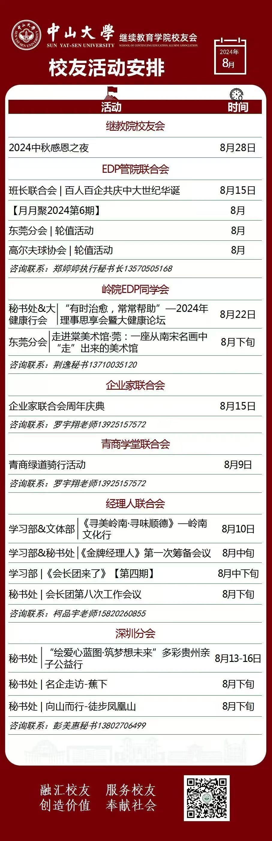 校友活动月报,传递最新校友活动播报:大暑炎炎,热浪滚烫。2024年7月,校友会各分组织积极举办多场精彩纷呈的活动。链接校友,创新价值,打造高质量校友交流平台,欢迎校友们关注支持,一起向未来!
