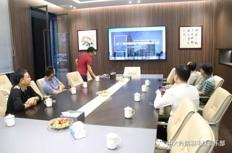 当天17:30,羽毛球俱乐部领队周继宗与俱乐部同学代表,以及网球俱乐部副理事长陈朝俊、朱少青,一起到达汇强创意园区,网球俱乐部理事长高志辉表示热烈欢迎同学代表的到访,带领大家参观了地产企业 —— 广州市城新地产投资策划有限公司,并对公司的业务项目和发展方向做了基本介绍,与到场同学进行了初步交流。