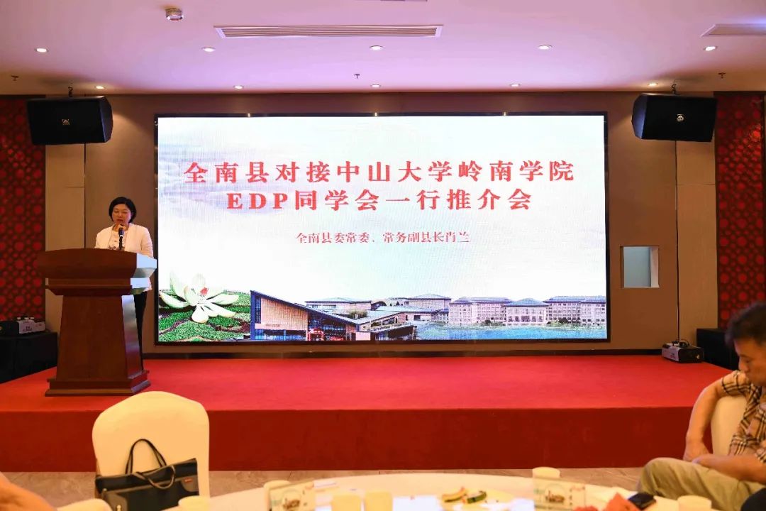 吴春清会长代表讲话,感叹本次出行见证到全南县的变化之大,发展之快。特别是全南县焕然一新的城市面貌,引进高科技产业发展的同时,也很好地将深蕴客瑶文化的古村落和人文习俗保存下来,欢迎中大优秀企业家对全南的发展给予关注和支持。