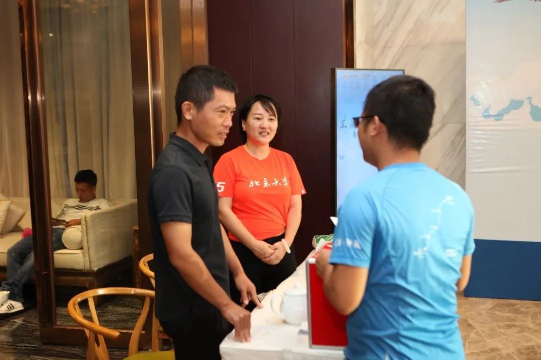 ▲默默无闻的后勤保障北大汇丰征戈会秘书长堃戈(刘堃,左一)在签到到处等待着欢迎着各位戈友的到来