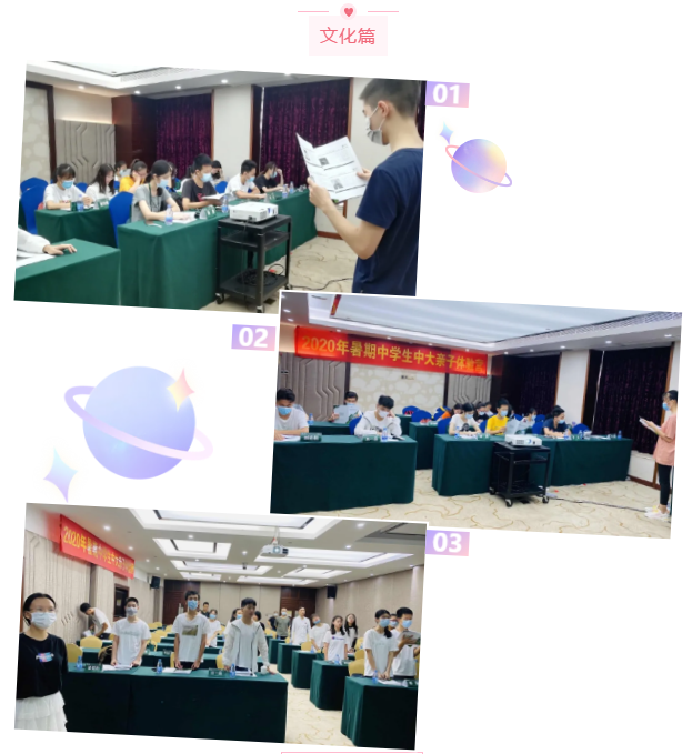 体验营活动期间,中大紫荆教育邀请了来自岭南学院、博雅学院、物理与天文学院、艺术学院、海洋科学学院、物理学院、国际翻译学院院长、教授们为营员们现场授课,安排了丰富多彩的专题讲座:古今中外、天文地理、声光化电、诗词歌赋、琴棋书画、乃至礼仪修养等,开阔营员们的文化视野。除了专题课程学习,体验营还安排了专业介绍、参观学习、小组讨论、经典诵读、分享交流会等活动,为优秀中学学子提供了一个深入了解yl9193永利集团的平台。