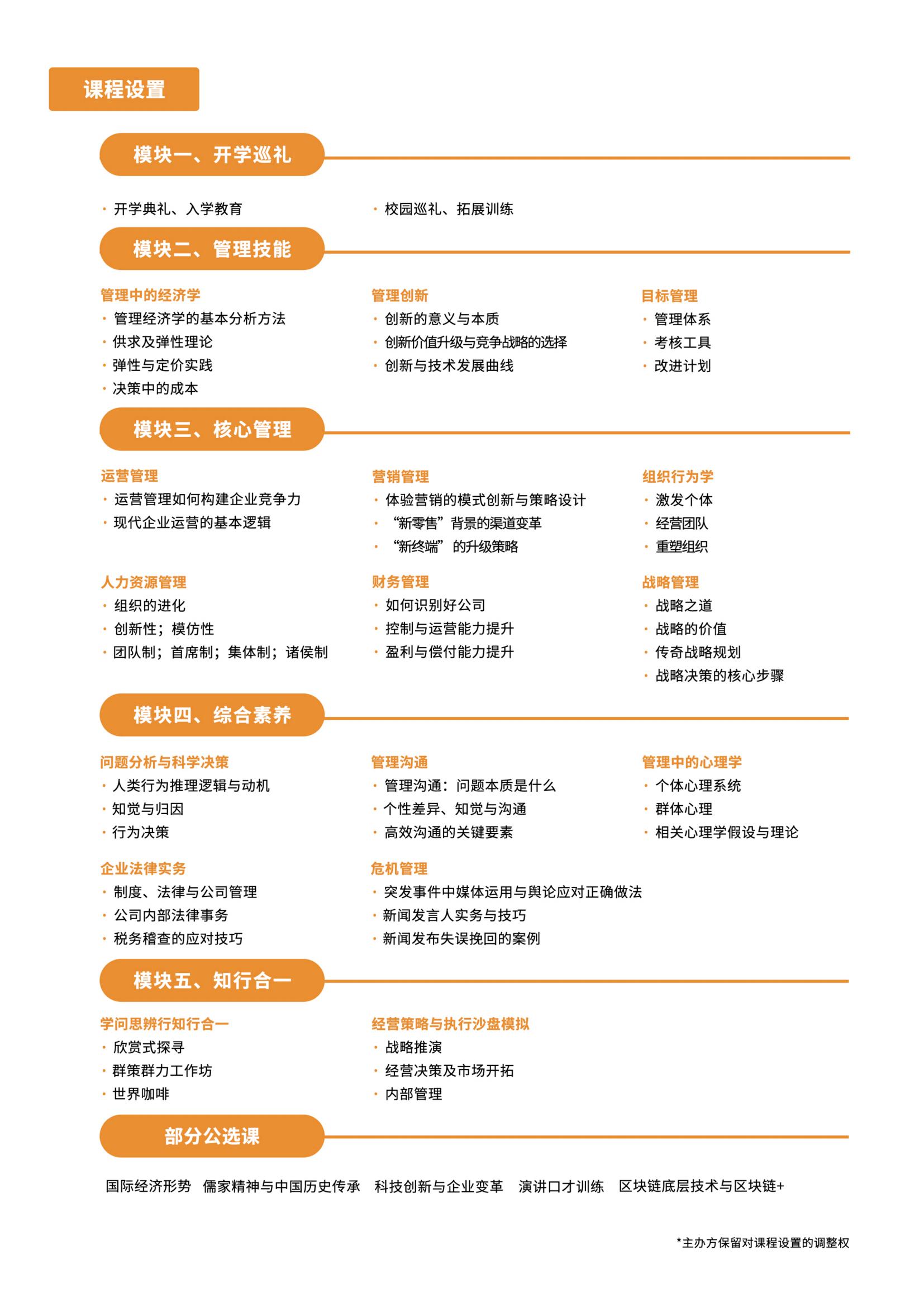 经理人工商管理研修班 不定期 咨询电话余主任 020-84113360 张老师 020-84112114 符老师 020-84112091 孙老师 020-84113884 黄老师 020-84112100 导航痕迹 yl9193永利集团岭南学院高层管理教育(EE)中心 公开课程 综合|经理人工商管理研修班 经理人工商管理研修班 综合 | 企业家工商管理高级研修班 综合 | 企业家工商管理高级研修班(深圳) 综合 | 经理人工商管理研修班 综合 | 青商学堂 综合 | 领军企业家科技与人文高级研修班 专业 | 金融投资与资本运作班 专业 | 财务总监高级研修班 专业 | 营销管理高级研修班 短训课程 学习卡 经理人工商管理研修班 课程特色课程设置招生对象报名事项师资力量学生情况增值服务学员风采