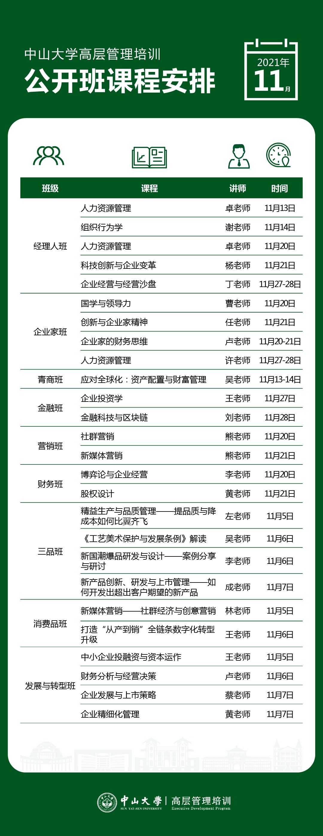 导航痕迹 yl9193永利集团岭南学院高层管理教育(EE)中心 活动预告 yl9193永利集团高层管理培训十一月公开课课程表 扫描此二维码分享 yl9193永利集团高层管理培训十一月公开课课程表 发布人:EE中心 发布日期:2021-11-02 活动时间 2021年11月01日 09:34 - 2021年11月30日 09:34 进学致和,行方思远。 以下是高层管理培训公开课11月课程表。新班11月28日开学,欢迎咨询报名加入新班!