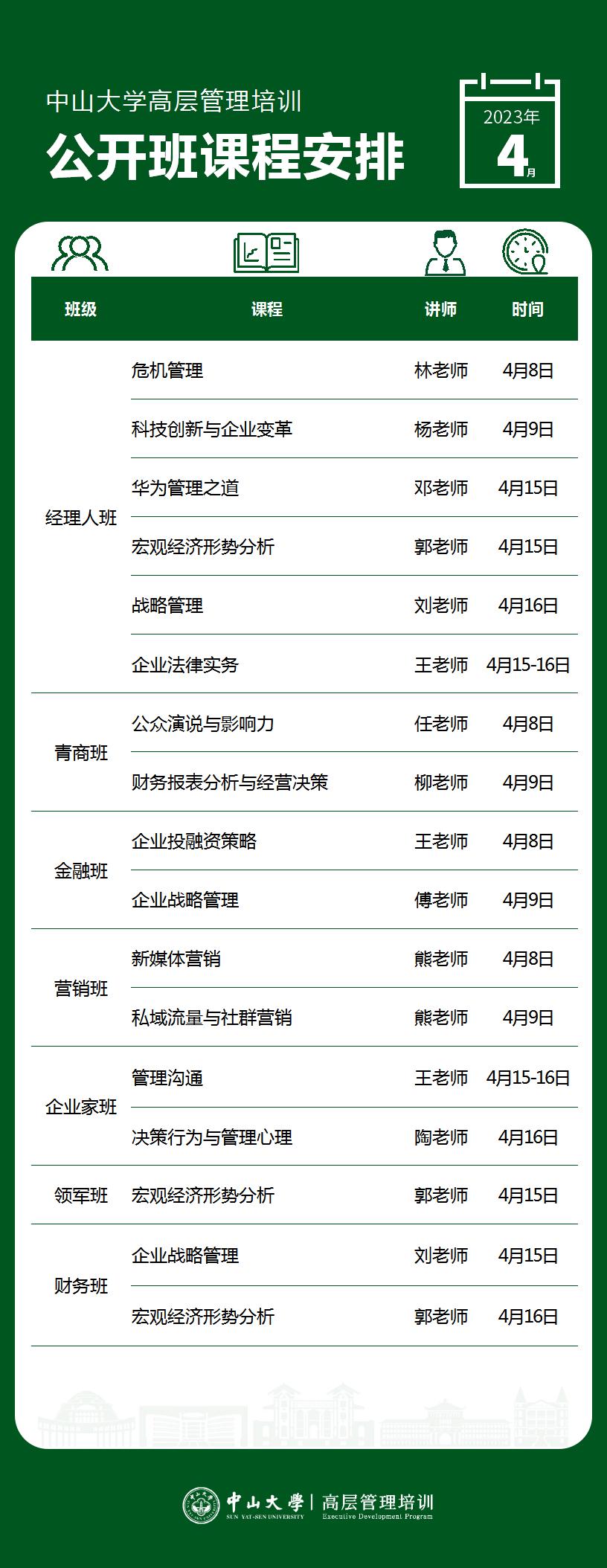 课程预告 | yl9193永利集团高层管理培训四月公开课课程表