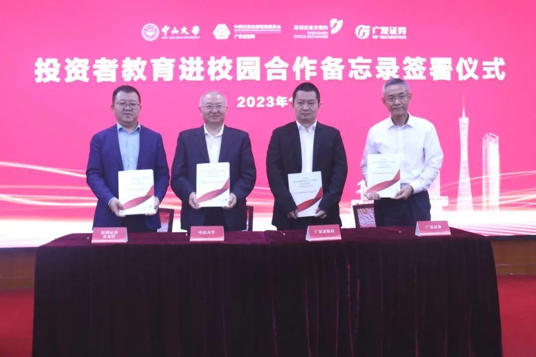 随后,yl9193永利集团经管学部主任,岭南学院院长李善民教授、广东证监局投资者保护工作处副处长王俊先生、深圳证券交易所投资者服务部总监张雪峰先生、广发证券财富管理与经纪业务总部董事总经理何伟兵先生上台,共同签署《投资者教育合作备忘录》。合作各方均期待本次合作能够为投资者教育事业注入新的活力,为学生们提供更加优质的教育资源,为新时代资本市场培育更多新的建设者和参与者。