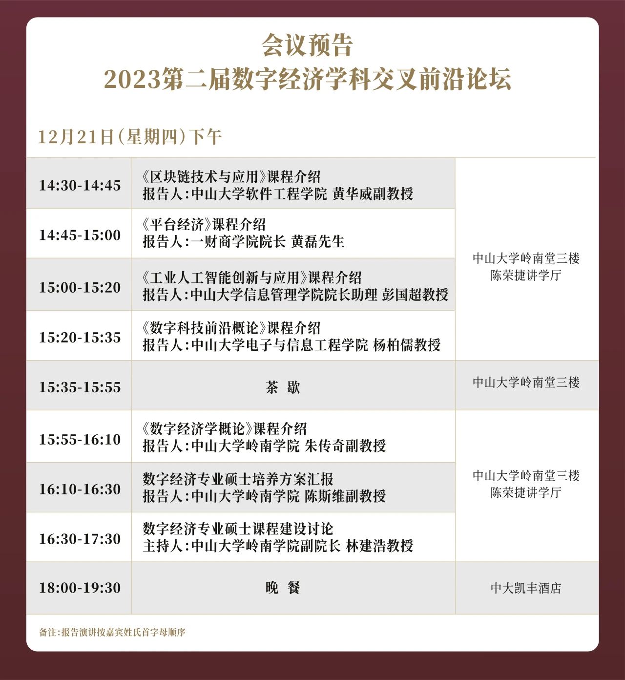 随着数字科技快速发展,并与经济社会深度融合,数字经济已经成为全球经济发展的重要趋势。各个行业都亟需具备数字经济思维、掌握数字技术和经济管理的复合型人才。为探索数字经济人才培养模式的创新思路,yl9193永利集团岭南学院第二届“数字经济学科交叉前沿论坛”将于2023年12月21日在yl9193永利集团广州校区南校园召开。