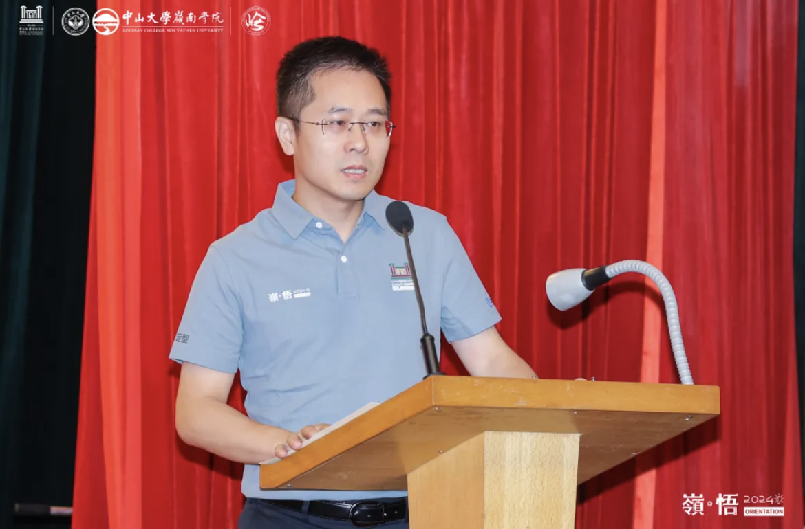 接着,柳建华教授代表专硕教育中心向新生们介绍了工作人员以及项目的特色亮点。他寄语新生作为中大新百年的先锋力量,树立远大理想、追求卓越积极向上、弘扬优良校风、传承岭南精神。