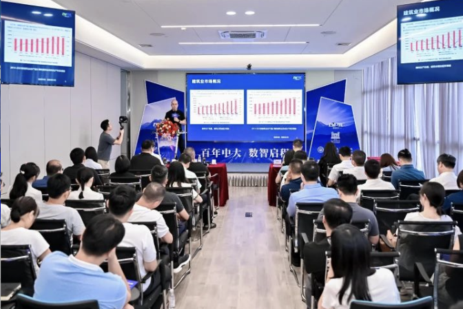 仪式结束后,罗小斌会长以《数字技术在建设领域的应用与认知》为主题,介绍了建筑业数字化发展现状,以及数据作为新型生产要素在建设领域的创新应用,并总结展望了建设领域在数字科技支撑引领下的发展。