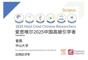 1月30日,爱思唯尔(Elsevier)发布了2025“中国高被引学者”(Highly Cited Chinese Researchers)榜单。我院曾燕教授2020-2025年、连续六年入选应用经济学学科领域高被引学者。