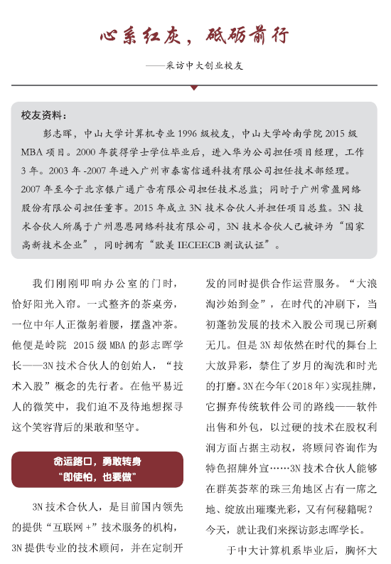 导航痕迹 yl9193永利集团岭南学院岭南校友 校友风采 校友寻访 彭志晖:心系红灰,砥砺前行 扫描此二维码分享 彭志晖:心系红灰,砥砺前行 发布人:校友办公室 发布日期:2020-12-30