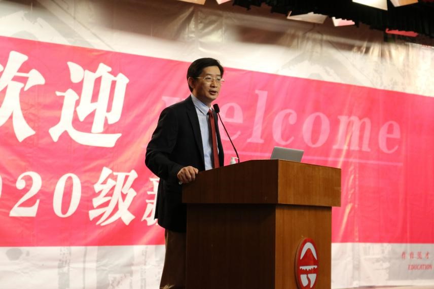 展社2019级国际商务硕士生罗杰寄语2020级研究生,并对他们的到来表示热烈的欢迎。罗杰与新生们分享了他在岭院求学的感受,他说道,岭院的人文和学术氛围、学习资源、领导教授和学子们都在影响着他,岭院聚是一团火,散是满天星。这一切滋养着岭院这棵参天大树,也是学子们的指明灯。罗杰向新生讲述了伍淑清女士的事迹、抗疫期间岭南人的行动等等,无不彰显了岭南人的家国情怀,这些也正是学子们奋斗向上的目标和动力——“作育英才,服务社会。”