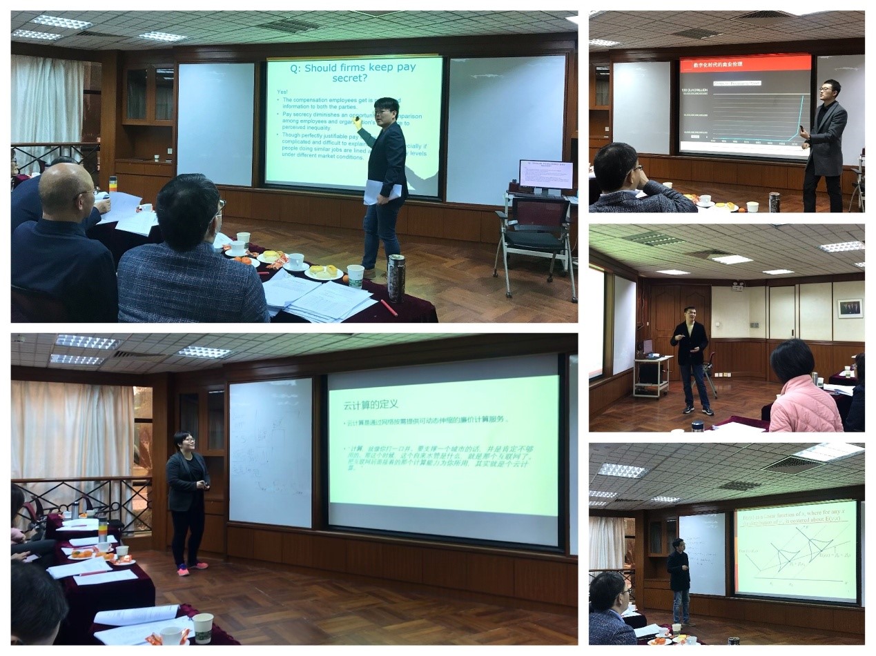 试讲会在组长许罗丹教授的主持下顺利开展,此次共有10门专业课程进行了试讲,其中包含了第一次开设的新课程,如《金融科技导论》、《人工智能概论》、《排队经济学》等,以及教师第一次在学院讲授的旧课程,如《计量经济学》、《国际人力资源管理(英)》、《商业伦理与社会责任》等。在参与试讲的教师中,既有多年任教经验的教师,也有刚入职的教师。