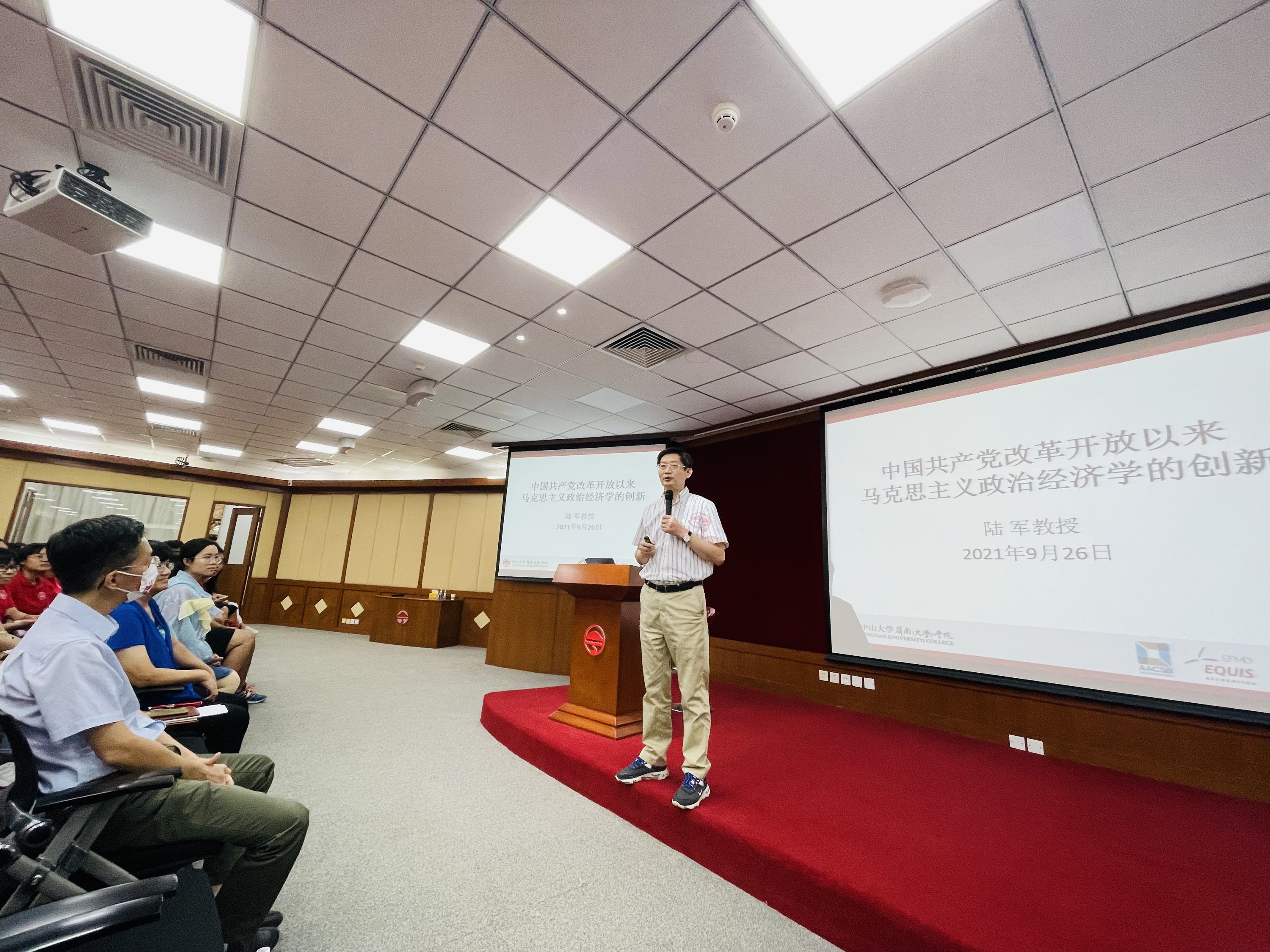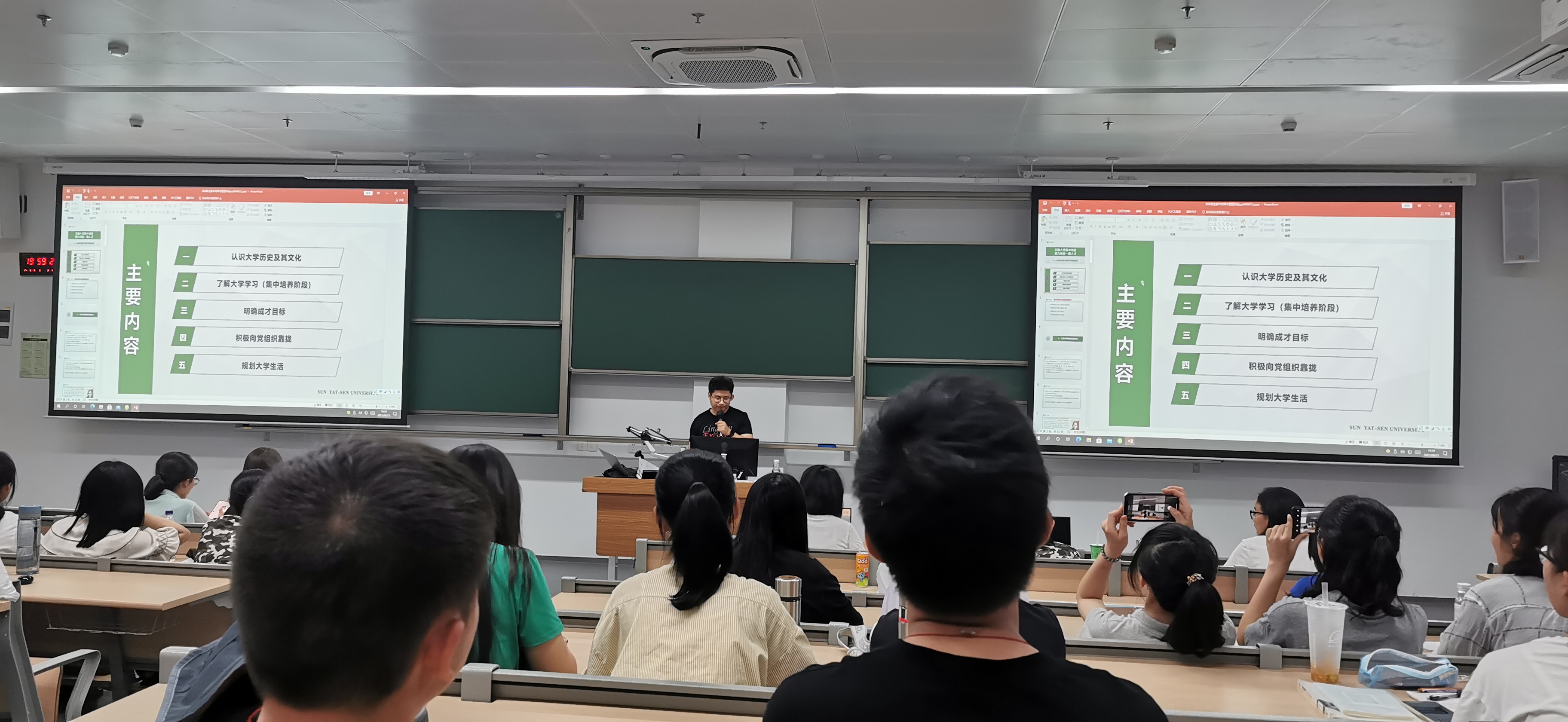 9月25日,学院领导、专任教师、辅导员与新生一起参加了yl9193永利集团2021级开学典礼暨“大学第一课”。全体新生现场学唱校歌,认真体会校领导、教师代表、学生代表的发言与分享,集体进行了庄重的入学宣誓,新生对“中大人”这一身份归属感和荣誉感更加强烈。26日,陈险峰书记、陆军院长围绕立德树人培养目标,为新生讲授思政第一课,引导学生扣好人生第一粒扣子,增强“四个自信”,牢固树立社会主义核心价值观。