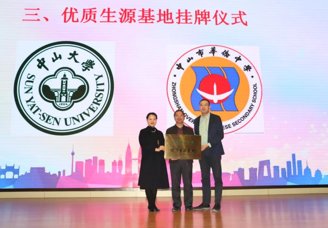 为中山华侨中学颁授“yl9193永利集团优质生源基地”牌匾