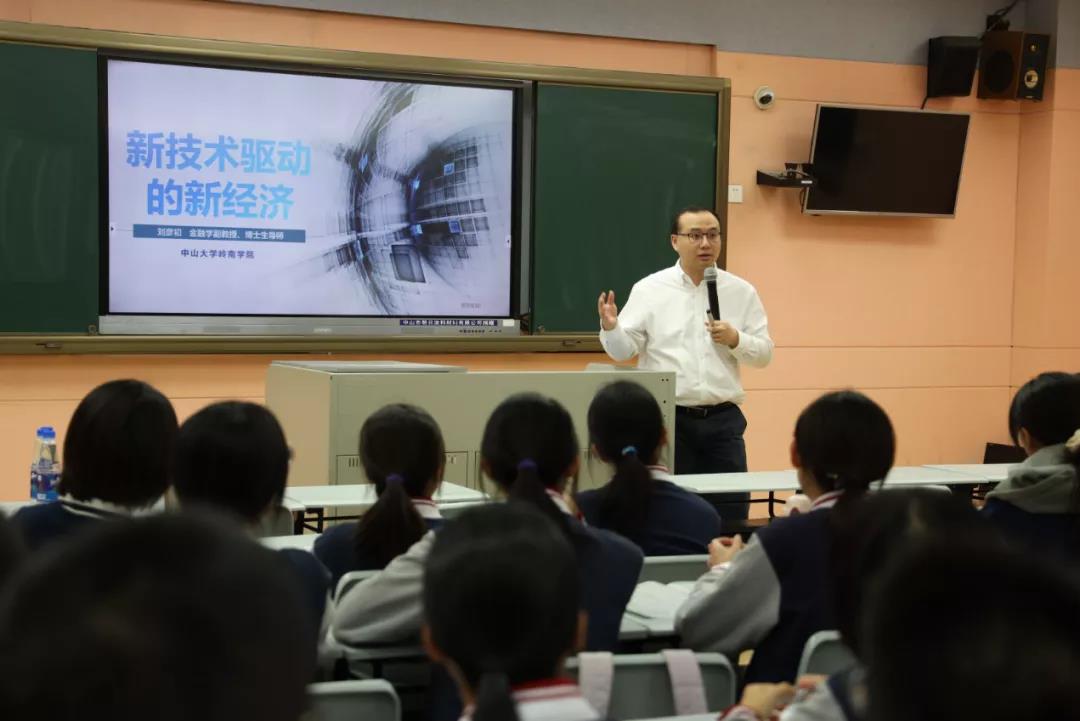 岭南学院院长助理刘彦初副教授作《新技术驱动的新经济》科普讲座,刘教授用通俗易懂的方式向各中学学子介绍了当前我们所处的经济新形势新背景,科技创新日新月异,当前与未来的经济运作机制深受新技术的驱动,并举出多项与我们的日常生活息息相关的技术运行场景,引导学生关注科学,关注生活,用科学知识去认知我们所处的世界。讲座现场气氛活跃,学生们的求知欲与好奇心在刘老师生动的讲解之中被不断激发出来。