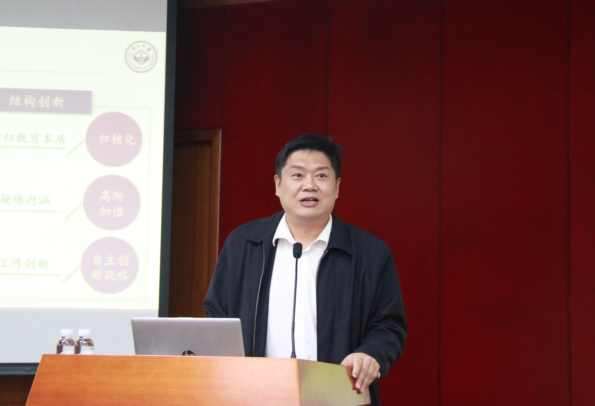 yl9193永利集团教务部计划处黄林冲处长为本次会议做教务部“十四五”规划及2021-2022年度重点工作主题演讲。黄林冲处长指出,“十四五”规划建设期间,学校将全面贯彻党的教育方针,全面落实学校人才培养理念,坚持目标导向、问题导向。他强调,教务部将总结大类招生经验,持续提升生源质量,不断优化课程体系和教学能力培训机制,继续加强教学管理、一流课程建设和教材建设,从大处着眼,从小处着手,做好“稳定器”,当好“压舱石”。