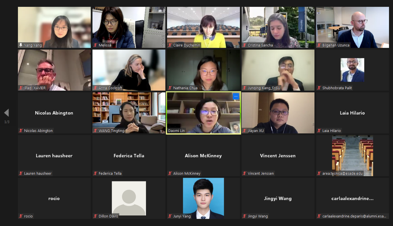 三国项目的任课老师们通过视频与同学们见面,并向同学们介绍课程。在接下来的课程学习中,同学们将与来自不同国家的学生完成多个项目,锻炼自己的跨文化团队合作以及多任务处理的能力,通过真实的案例分析与模拟运营、企业参访,增加商务实战经验,这都将增强同学们往后就业的核心竞争力。