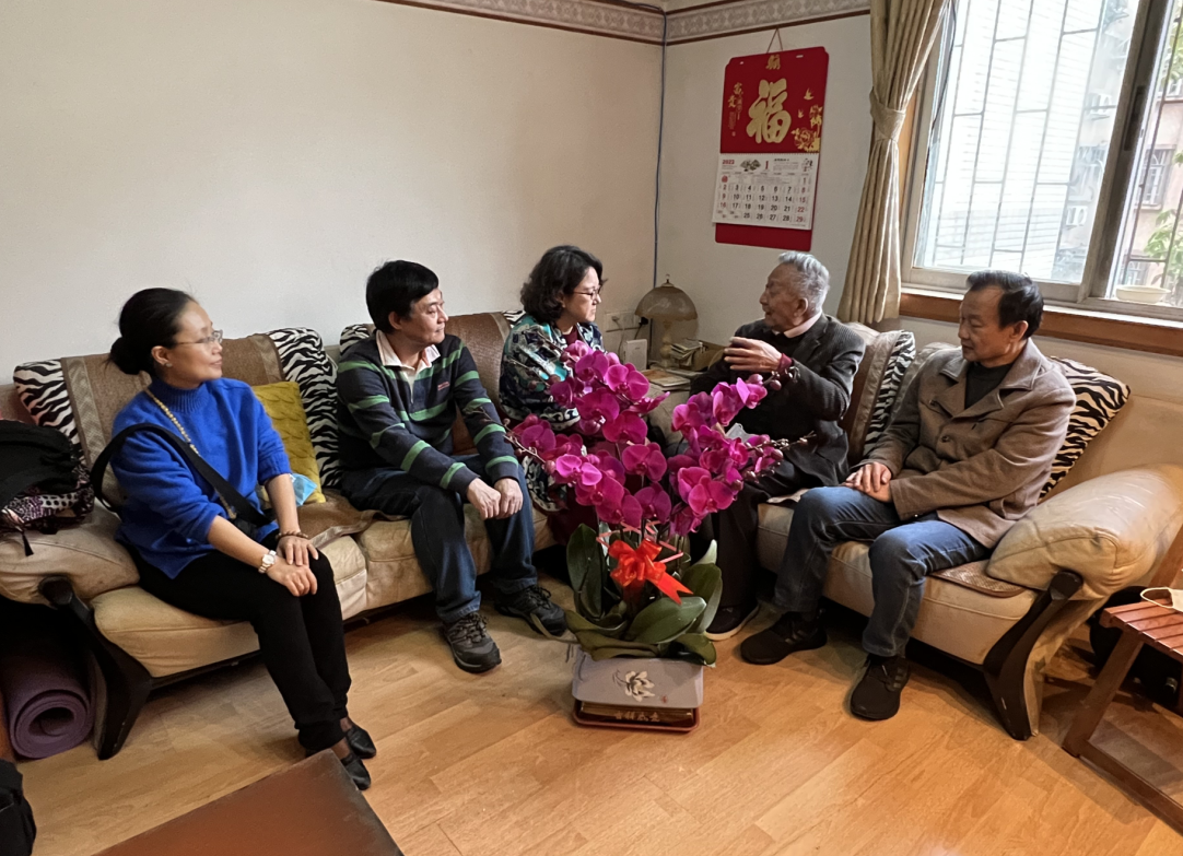当天,黄毅书记一行先后走访慰问了学院退休教授桂治镛和冼振熙。在老教授家中,学院领导、老师与老教授们及其家人亲切交谈,关心询问他们的身体状况和生活情况,叮嘱他们要注意防寒防疫,保重身体,并祝福他们新春快乐、健康长寿。