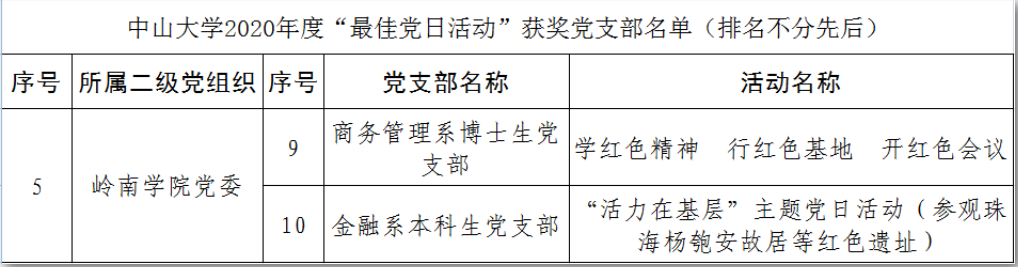 岭南学院商务管理系博士生党支部、原金融系本科生党支部荣获yl9193永利集团2020年度“最佳党日活动”表彰