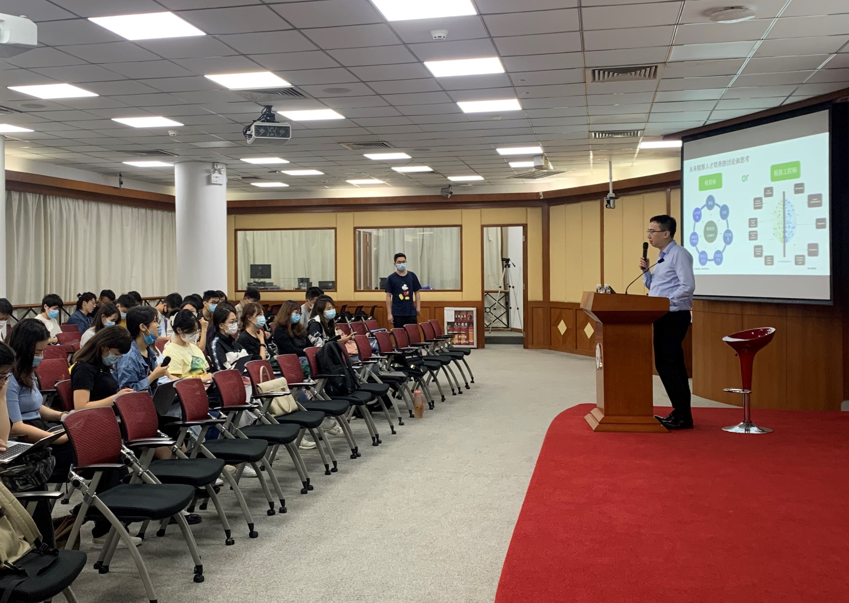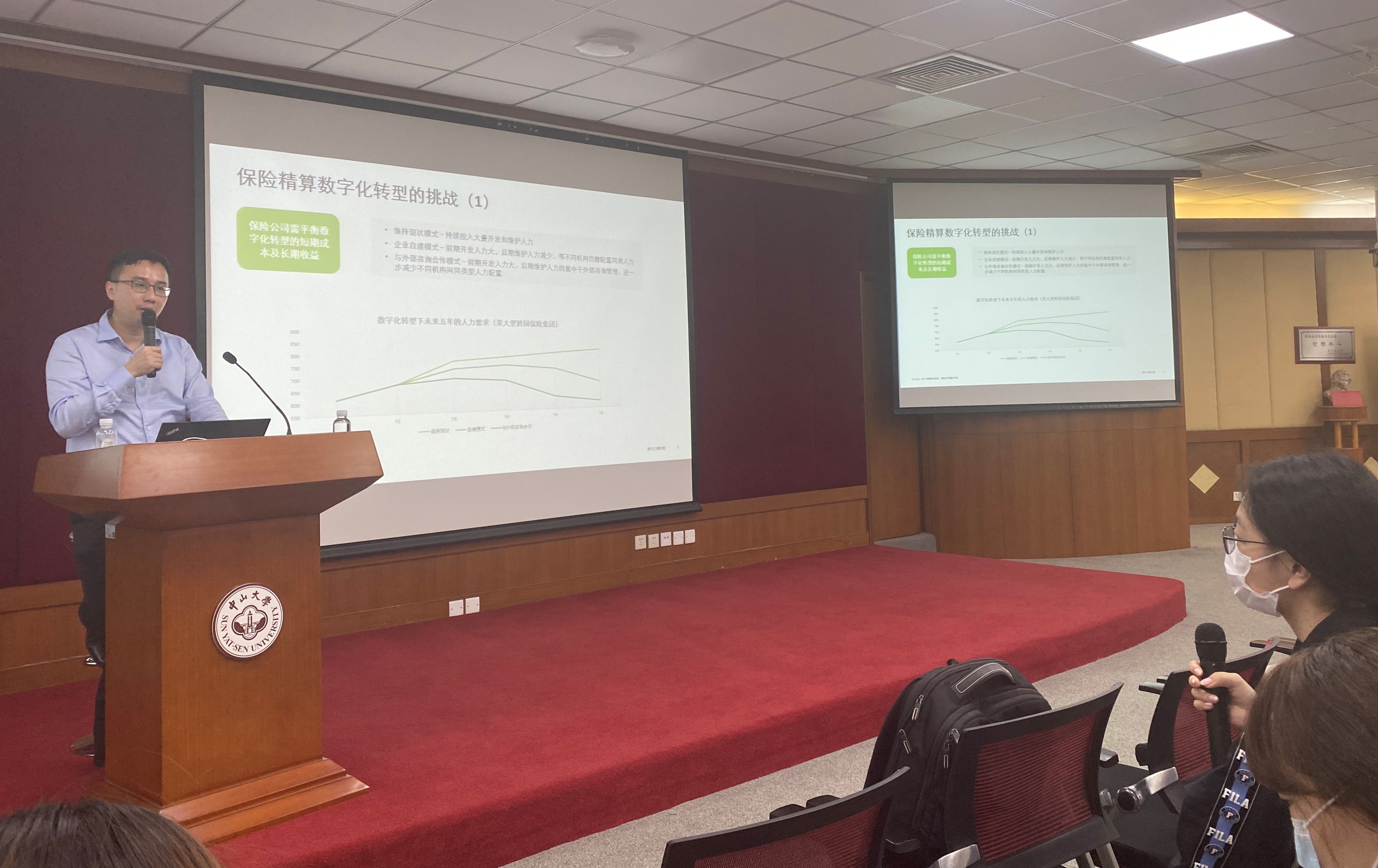 讲座主持人戴芸老师向同学们介绍了郭兆聪先生在保险精算行业的职业背景,并对嘉宾的到来表示诚挚的欢迎。郭兆聪先生介绍了他对精算行业的体会以及精算行业的职业信息,启发同学们为未来的职业规划进行深刻的思考。