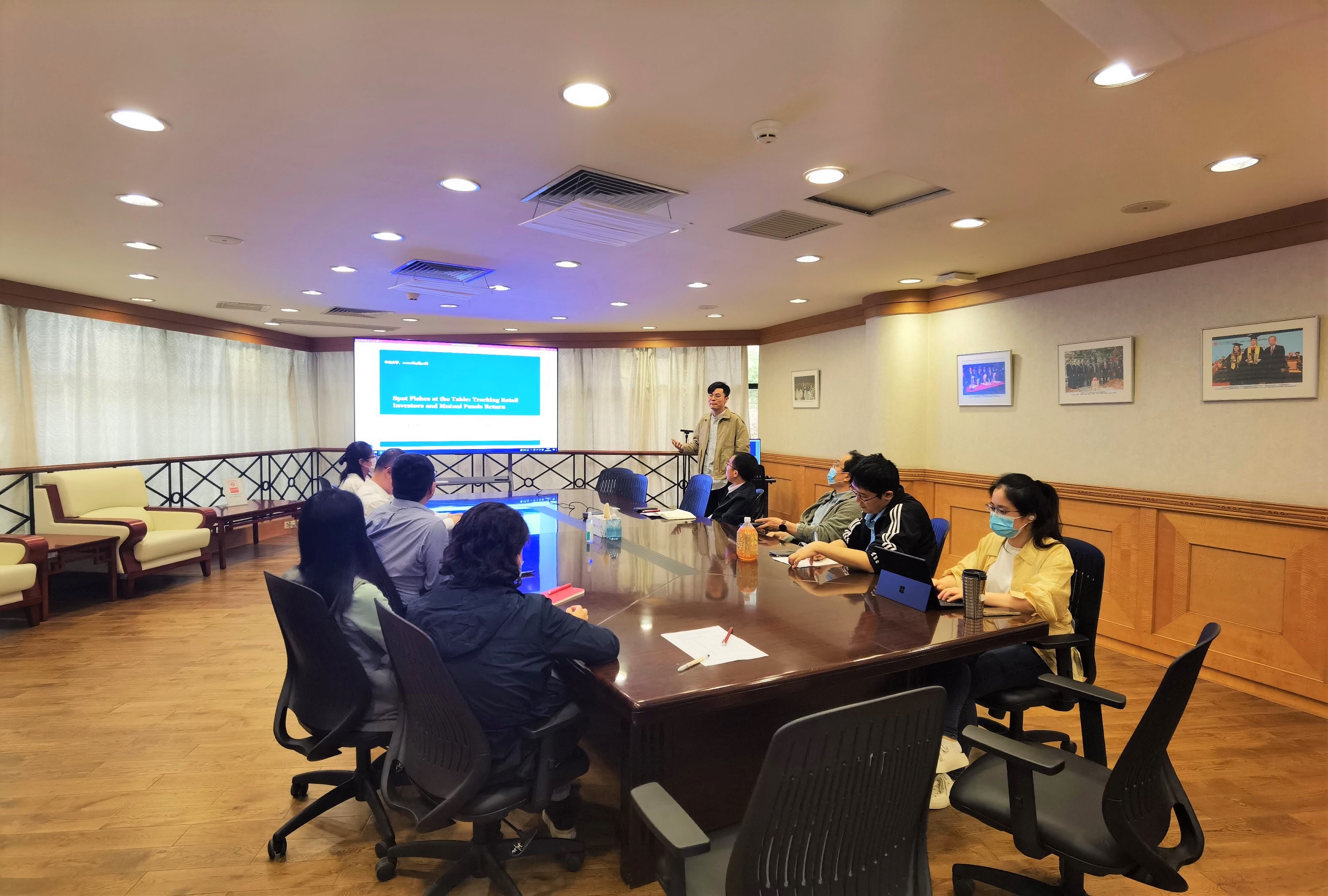 2022年3月31日中午,岭南学院保险与金融工程教研室在岭南堂林植宣会议室举行了一场学术分享会。学院助理教授康俊卿老师作为汇报嘉宾,为教研室的老师们带来了主题为“散户追踪与基金收益”的分享。