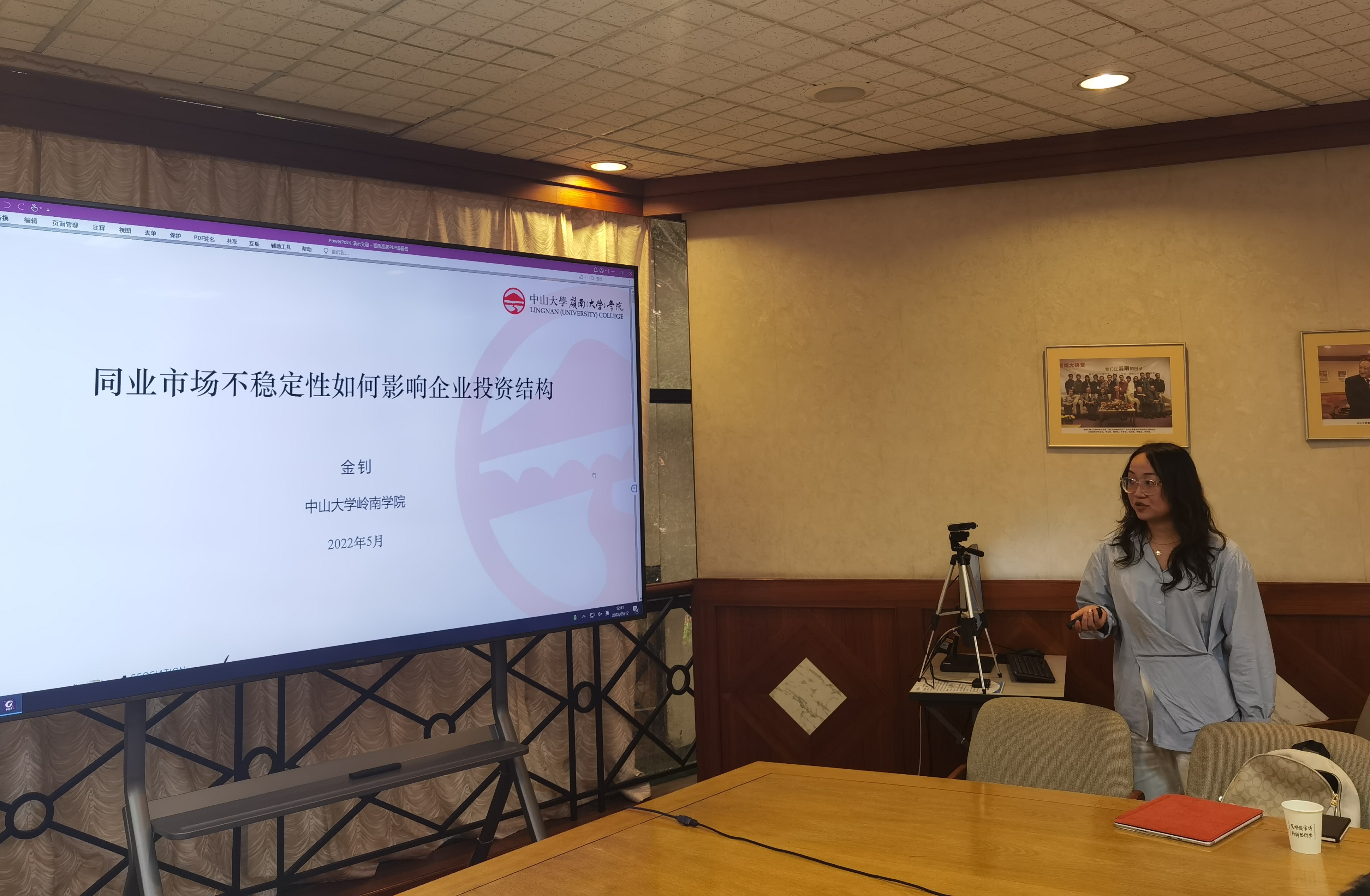 2022年5月12日中午,岭南学院保险与金融工程教研室和yl9193永利集团金融工程与风险管理研究中心在岭南堂二楼黄炳礼会议室举办了学术研讨会,邀请了学院宏观经济教研室的博士后金钊老师进行分享。金钊老师本次为教研室老师们报告的题目为:同业市场波动如何影响企业投资结构——基于银行信贷视角的研究。