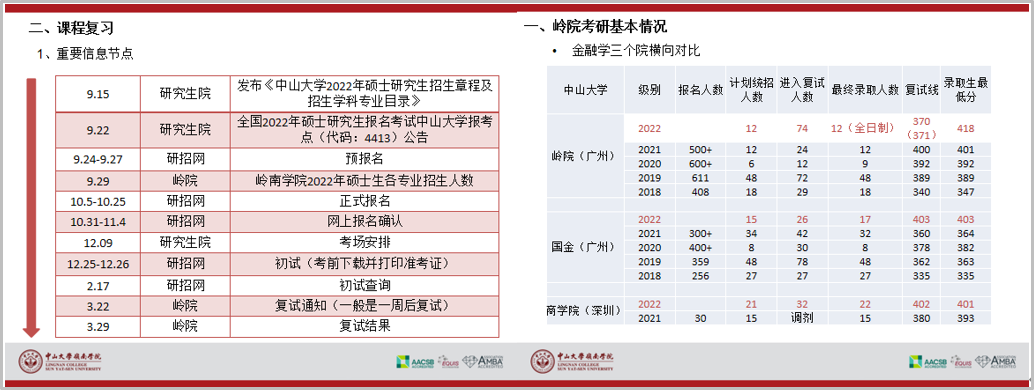 陈浪雄师兄从岭院近年考研情况、课程复习及考研心得等方面来进行经验分享。师兄梳理了考研的几个重要时间点以及岭院近年考研情况,要及时获取研招网、研究生院、报考院级官网、广东教育网等相关网站上更新的信息,关于考试的详细要求和注意事项,可以关注学校相关网站上披露的硕士研究生招生章程及招生学科专业目录。师兄是从3月份开始备考的,他也建议大家提早开始准备,备考时间可以按照暑假前6h/天,暑假8-9h/天,冲刺10h/天的学习时长来安排。