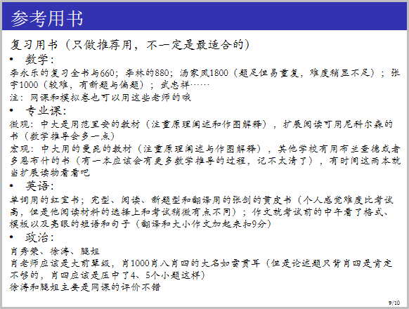 彭佳师姐从院校情况、考研经验等方面分享了自己比较特殊的跨专业考研经验。师姐首先介绍了清华医管专业考研的特点:逻辑学需要理科思维,但比较简单;医管综合需要大量背诵;没有数学。因为师姐所考的医管专业不需要考数学,所以她的备考是从九月初开始的,但是师姐也强调了:如果做不到每天极高效率和极长时间的备考,是有必要提前开始准备,而且相关信息收集及院校选择应该至少在4-5月份就开始。师姐还给了考研的同学们一些建议:不要给自己留后路,而且要兼顾毕业论文。