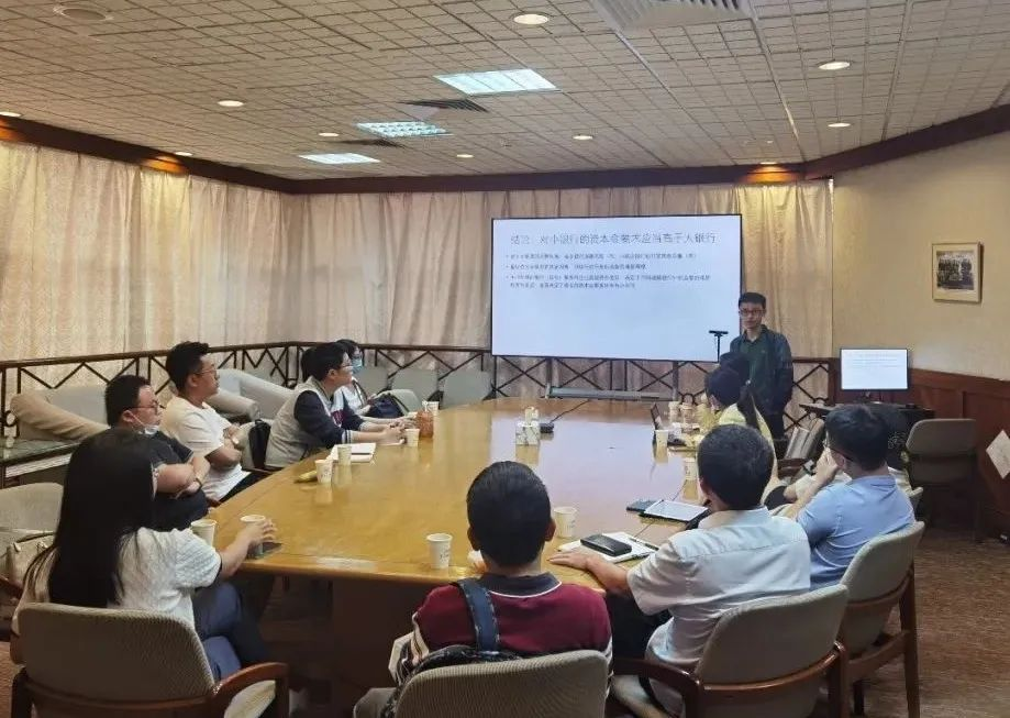 张一林老师首先向教研室的老师们分别介绍了中国与美国银行市场的典型特征,以及我国银行市场贷款的基本流程。基于现实背景,张一林老师构建银行与政府博弈的理论模型,他的研究发现由于不同规模的银行适合服务的企业类型不同,因此对不同规模银行的监管要求也应有所不同。中小银行在服务中小企业上具有比较优势,但中小企业的软信息不易验证和传递,对于以服务中小企业为主的中小银行,政府从外部进行有效监督的难度较大,为防范中小银行的道德风险,对中小银行的资本金要求应当足够高。大银行在服务大企业上具有比较优势,而且大企业的硬信息充足,政府较易对以服务大企业为主的大银行进行外部监督,在严格的外部监督下可以适当降低对大银行的资本金要求,让大银行有更多资金服务大企业。教研室老师们与张一林老师就理论模型设置、结论的直观经济解释、文章的政策含义展开热烈的讨论,并就论文发表等作出交流。