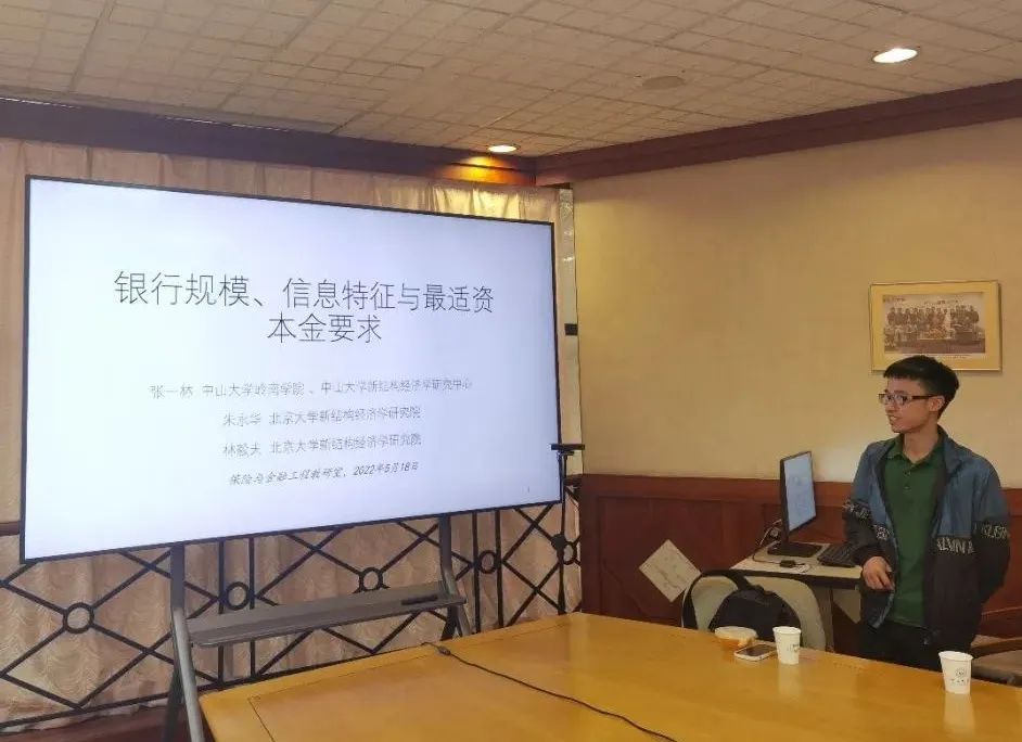 2022年5月19日中午,岭南学院保险与金融工程教研室和yl9193永利集团金融工程与风险管理研究中心在岭南堂二楼黄炳礼会议室举办了学术研讨会,邀请了学院货币金融教研室主任张一林老师进行分享。张一林老师本次为教研室老师们报告的题目为:银行规模、信息特征与最适资本金要求。