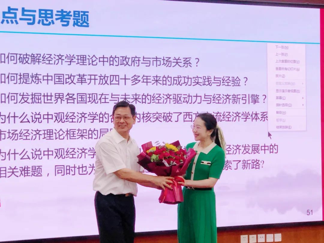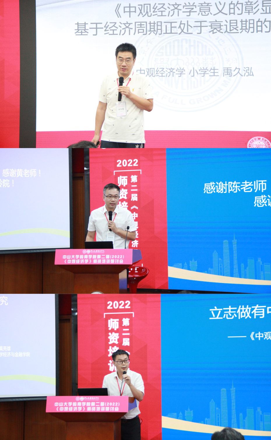 苏州大学禹久泓教授、华南理工大学黄亮雄副教授、广东财经大学王方方副教授作为学员代表,结合中国和世界各国经济发展历程及自身专业知识,分享了学习《中观经济学》的心得体会和对《中观经济学》未来发展的美好祝愿。禹教授以“中观经济学意义的彰显-基于经济周期正处于衰退期的思考”为题,认为中观经济学深耕于中国经济发展的大系统,为普世经济发展之路提供指引,并提出了一些可以深化探讨的课题建议。黄教授以“立志做有中国特色的经济学研究”为题,为中观经济学科发展提出了建议及承诺,中国特色经济学科等研究大有可为,在以后的教学科研工作中,将立志做有中国特色的研究,研究真问题,真研究问题。