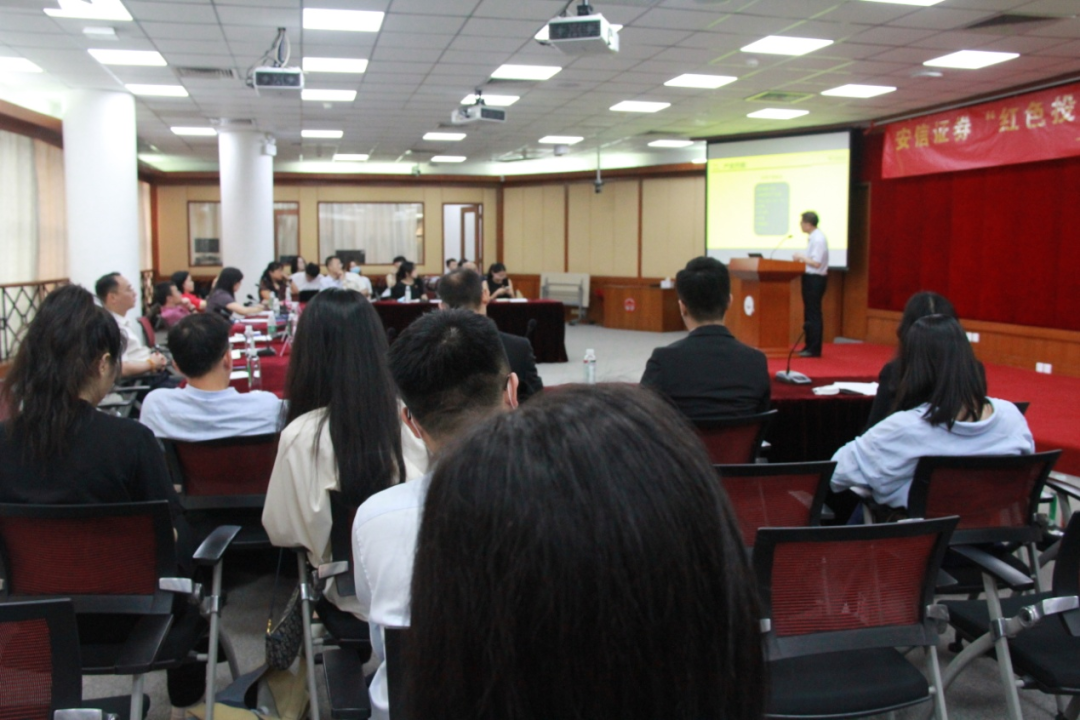 随后是专家主题分享环节,安信证券广州分公司首席投资顾问雷祖武先生做了“从居民资产结构看未来的经济和投资”的主题分享;安信证券广州分公司机构投行部项目经理张锐豪先生做了“注册制下企业上市节奏”的主题分享。安信证券广州分公司人力部负责人还介绍了安信证券广州分公司发展历程等相关情况。