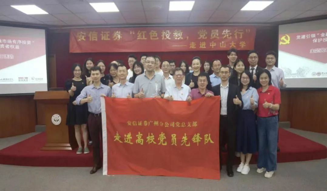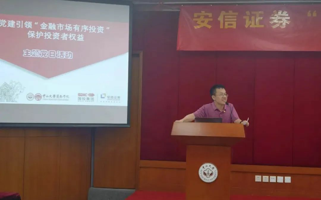 岭南学院党委认真贯彻落实习近平总书记“四个面向”重要指示精神,结合庆祝中国共产党成立101周年活动,指导学院金融学专任教师第一党支部与安信证券广州分公司第一党支部于6月21日以“党建引领‘金融市场有序投资’,保护中小投资者权益”主题开展结对共建活动。岭南学院党委黄毅书记,金融学专任教师第一党支部书记罗党论教授、组织委员戴芸副教授和安信证券广州分公司第一党支部雷祖武书记等出席,岭南学院部分党支部代表和学生党员代表共30多人参加了活动。金融学专任教师第一党支部宣传委员李卉文同志主持活动。