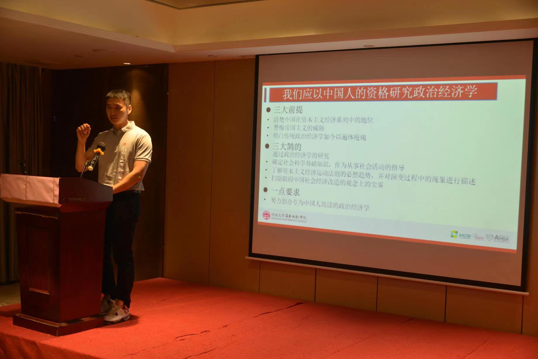 研讨会中,同学们研究讨论了对政治经济学的学术定义、认识路线、理论方法等方面的理解,也分享了对政治经济学与哲学、法学、社会学等领域的交叉关系、解决实际问题等方面的思考。同学们认为:“求知原不难,难在明变”,我们应站在中国人的立场上来研究经济,用经济学理论去理解社会现象;要做到具体问题具体分析,应以中国人的资格研究政治经济学。